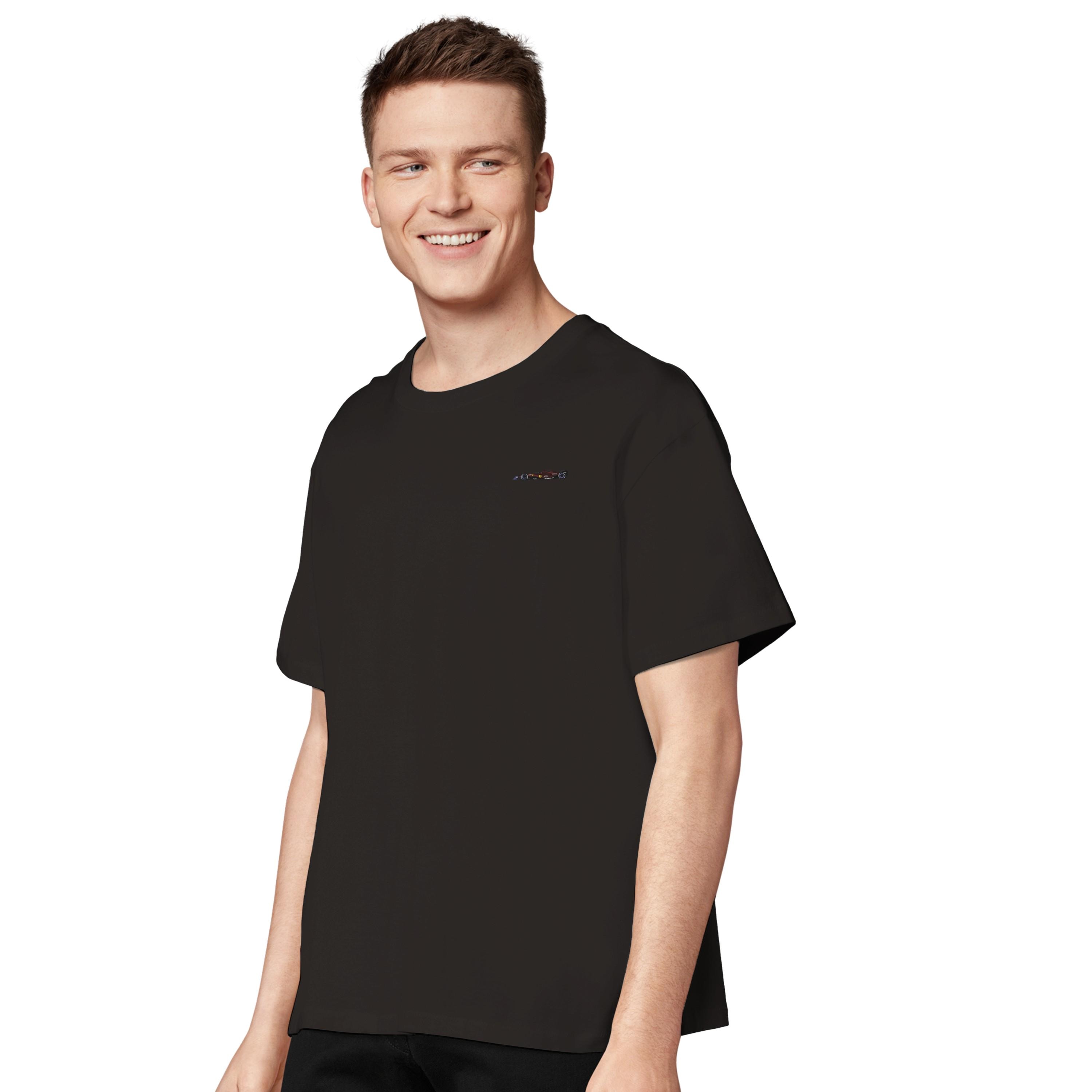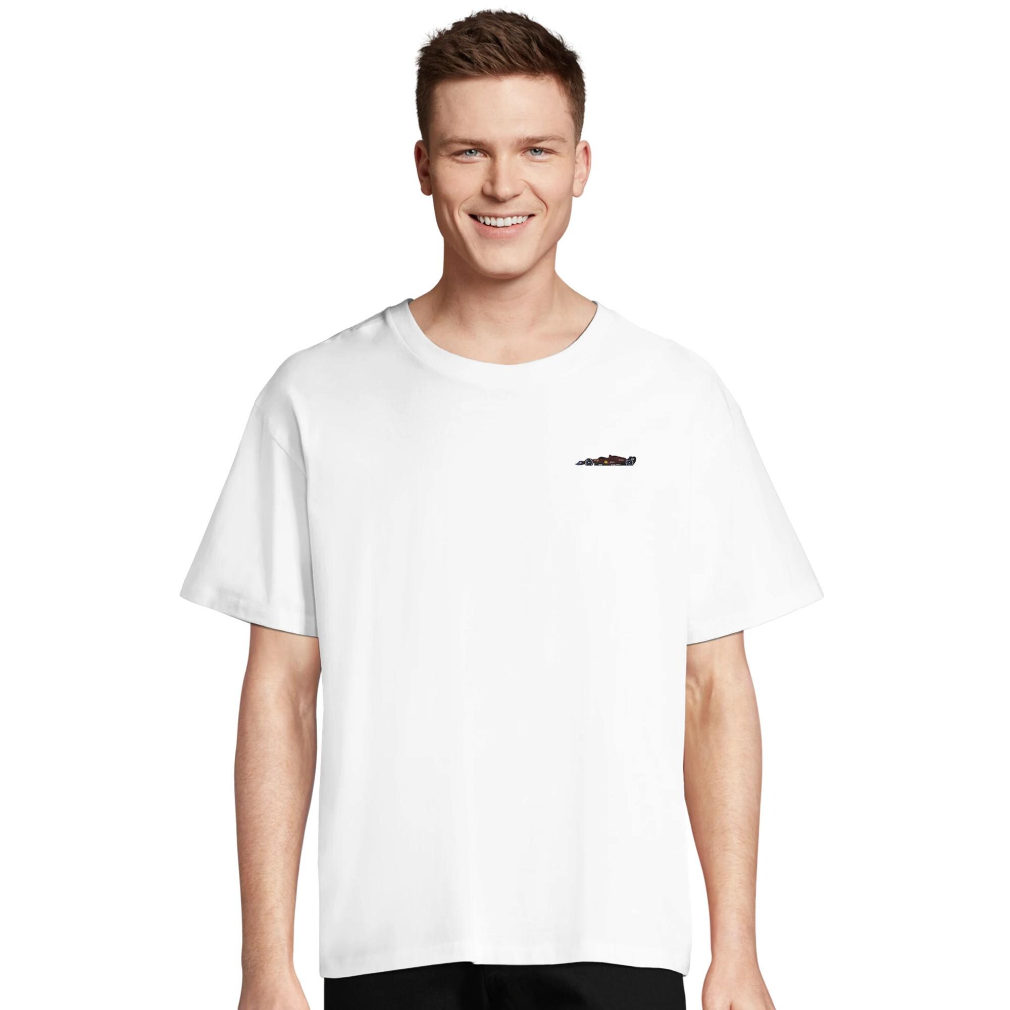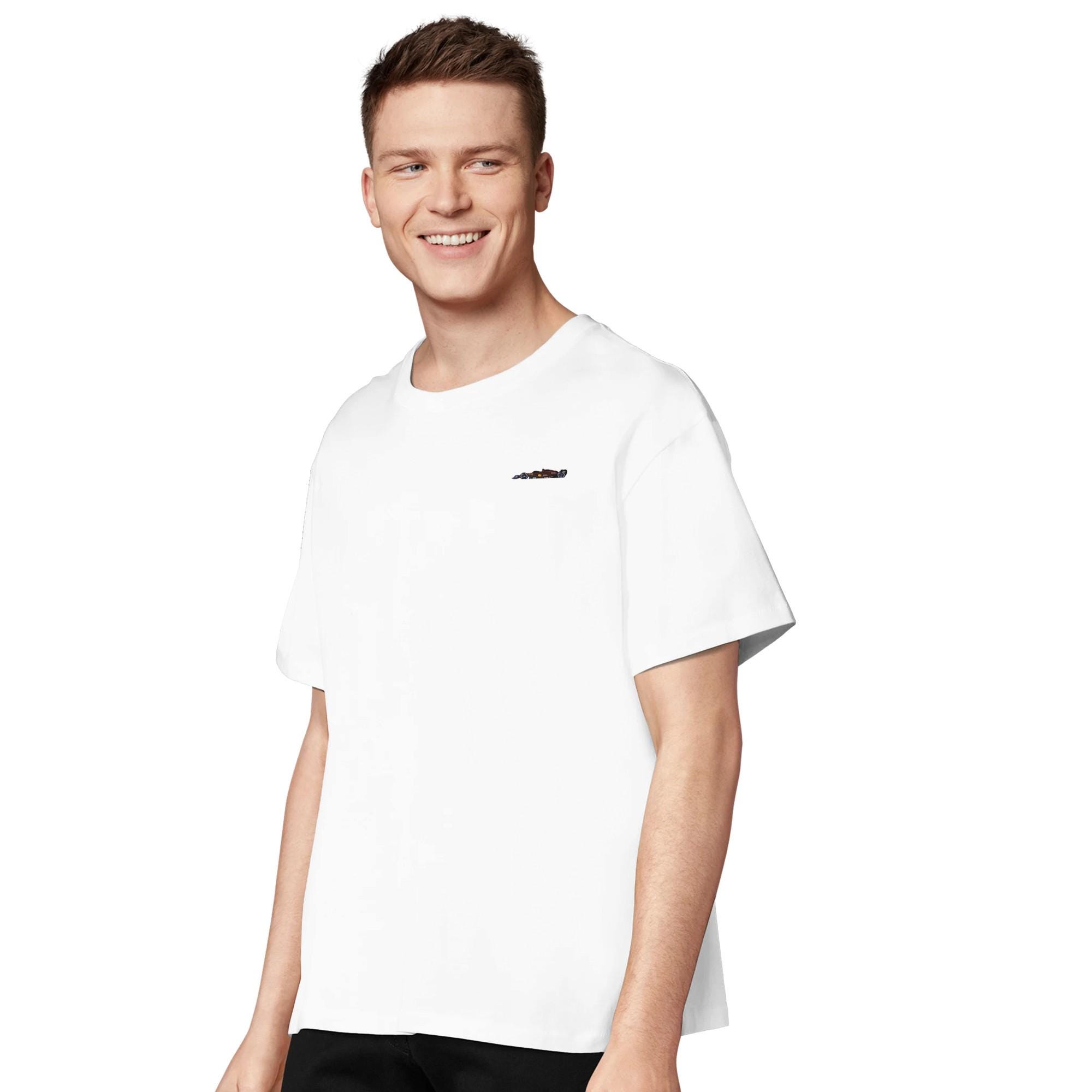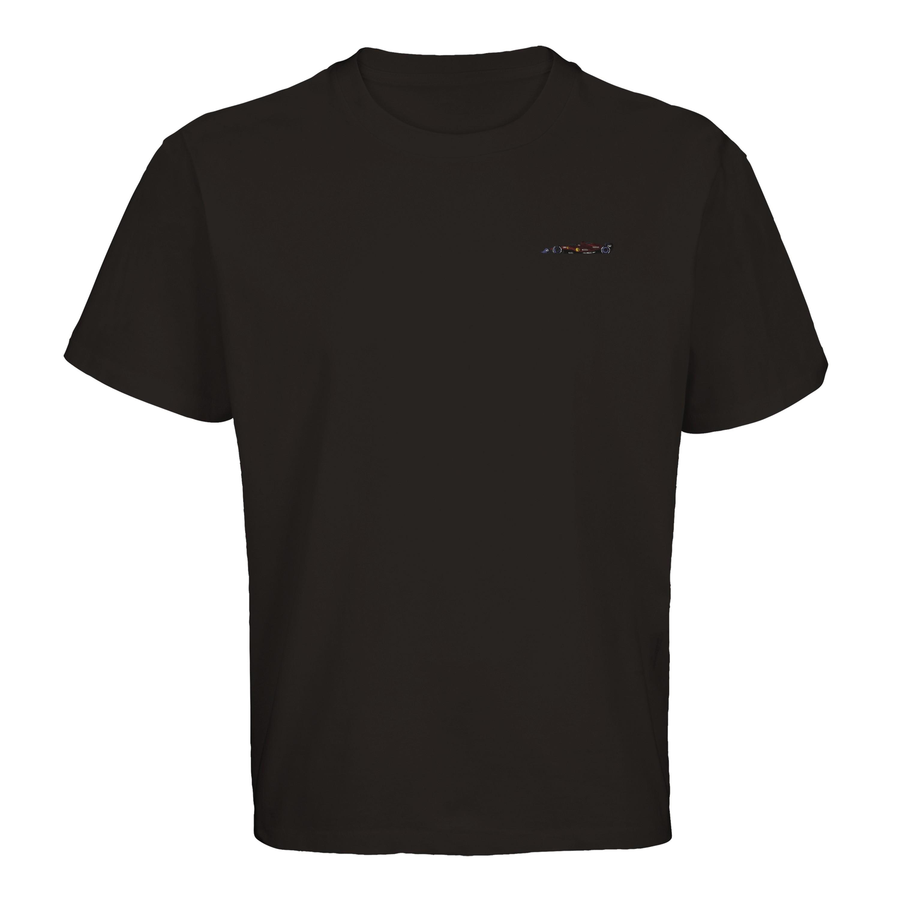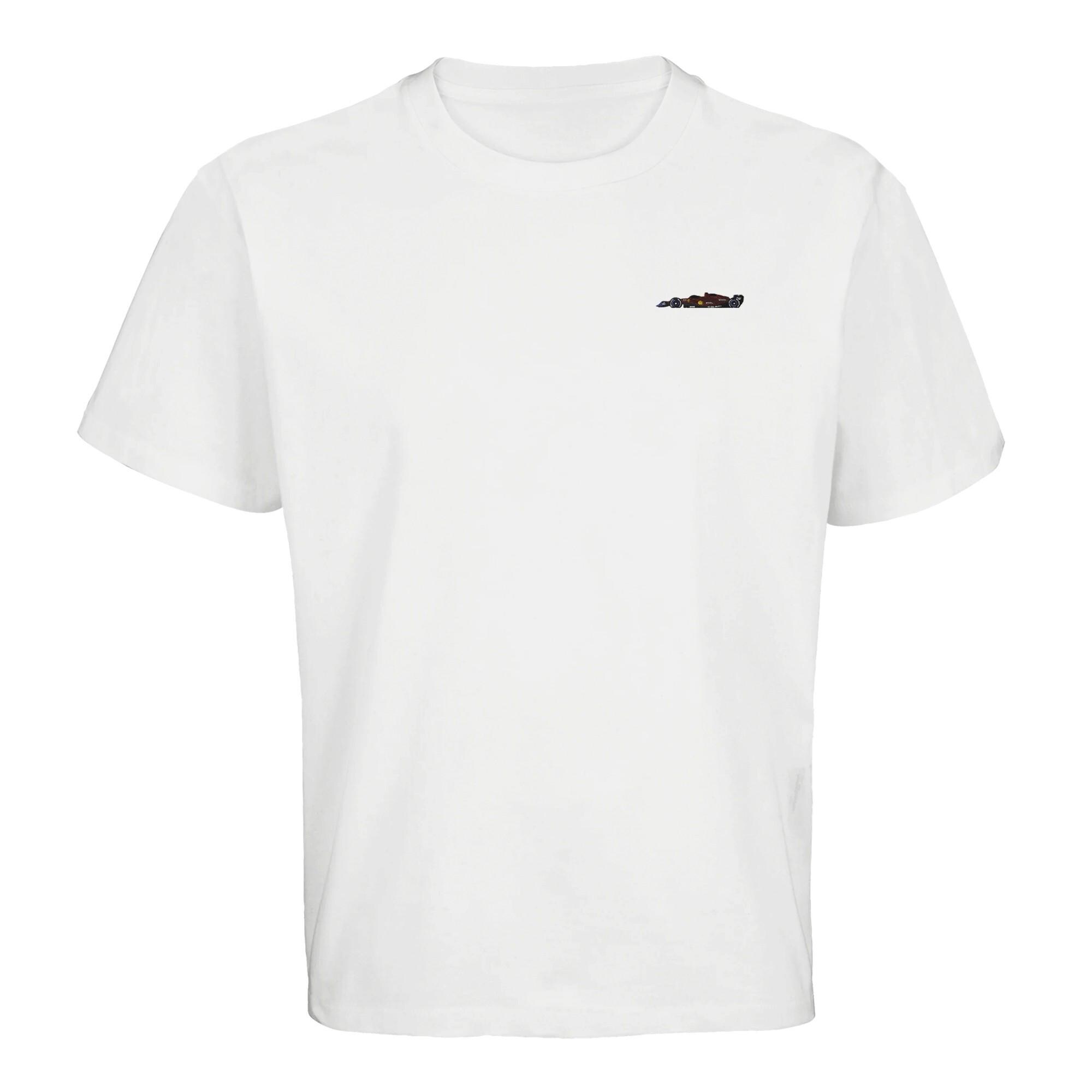 This fine embroidery on the left chest shows an iconic red racing car in a clean design – perfect for true motorsport fans, sim racers and anyone who prefers to wear speed subtly.