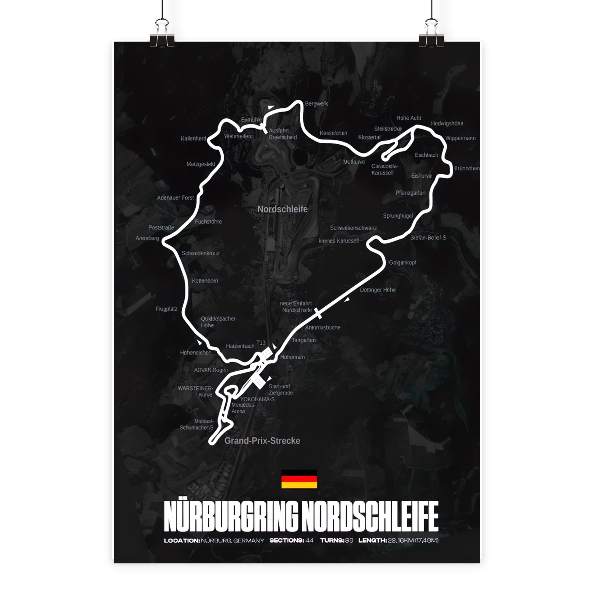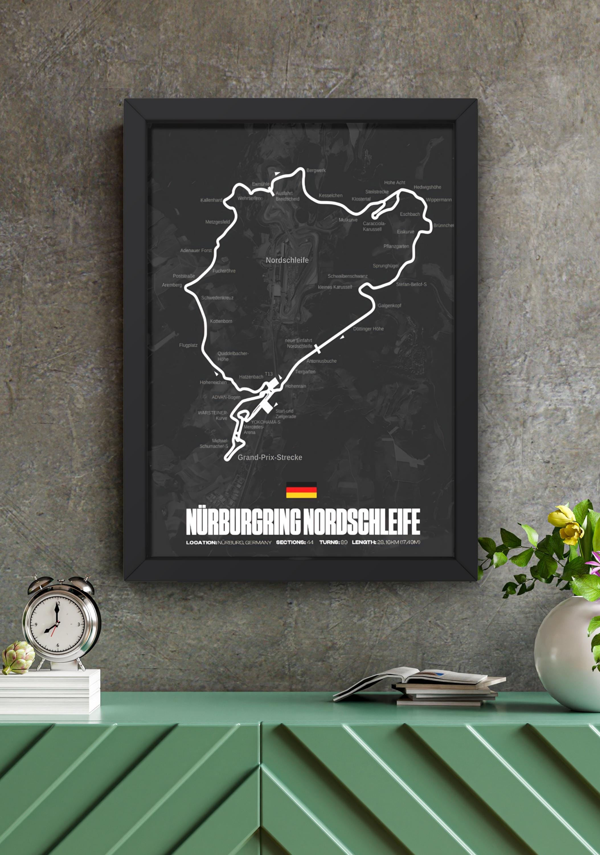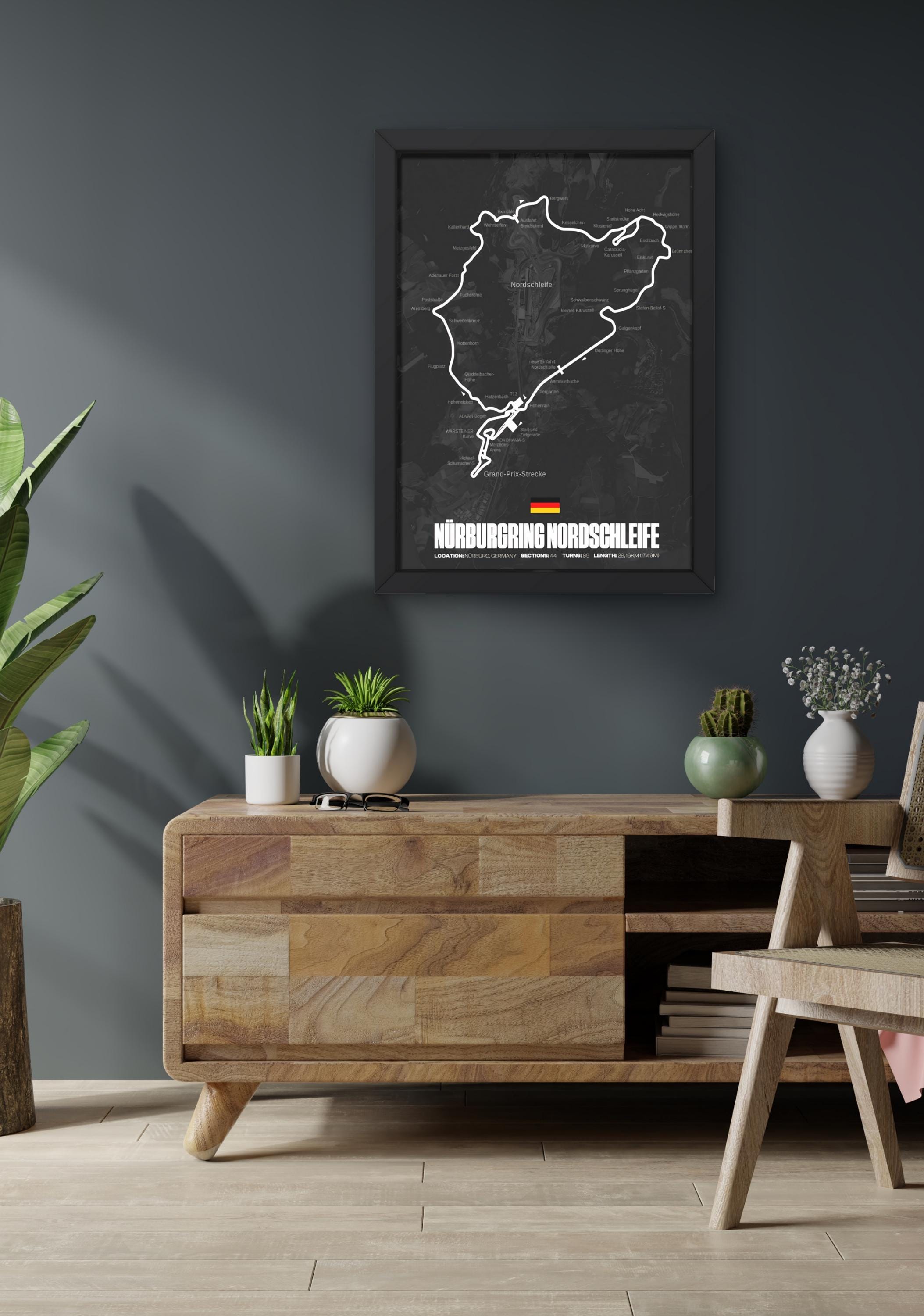 Bring Motorsport-Geschichte an deine Wand. Dieses hochwertige Nürburgring Nordschleife Poster zeigt die legendäre Rennstrecke in einem modernen, minimalistischen Design. Die ikonische Streckenführung wird klar hervorgehoben und macht das Poster zum perfekten Blickfang für Motorsport-Fans, Simracer, Auto-Enthusiasten und Nürburgring-Liebhaber. Ideal für: Gaming- & Simracing-Setups Wohnzimmer, Büro oder Garage Geschenke für Rennsport-Fans ✦ Details Motiv: Nürburgring Nordschleife (Deutschland) Stil: Modern, minimalistisch, schwarz-weiß Druck: Hochauflösender Premium-Kunstdruck Finish: Matt (keine Spiegelungen) Lieferung: Poster ohne Rahmen ✦ Größen Verschiedene Größen verfügbar (bitte im Dropdown auswählen) ✦ Hinweis Farben können je nach Bildschirm leicht variieren. Der Rahmen dient nur zur Dekoration und ist nicht im Lieferumfang enthalten. Perfekt als Geschenk zum Geburtstag, zu Weihnachten oder einfach für echte Petrolheads